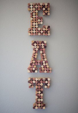 These DIY wine cork letters that spell out the words "eat" and "bar" add a rustic and stylish touch to any kitchen or dining room. The letters are made from wine corks, which have been sliced into thin pieces and glued to a piece of cardboard or foam board. You can spell out any word you like, such as "cook," "dine," or "taste," to suit your personal style and decor. To make these wine cork letters, you will need a collection of wine corks, a hot glue gun, a utility knife, cardboard or foam board, and a clear sealant. Simply slice the wine corks into thin pieces using a utility knife, then glue the pieces to the cardboard or foam board in a desired pattern to create the letters. Apply a clear sealant to protect the corks from moisture, then hang the letters on a wall or display them on a shelf to add a personal touch to your kitchen or dining room. These wine cork letters are a unique and eco-friendly addition to any home and are sure to inspire your culinary creativity.