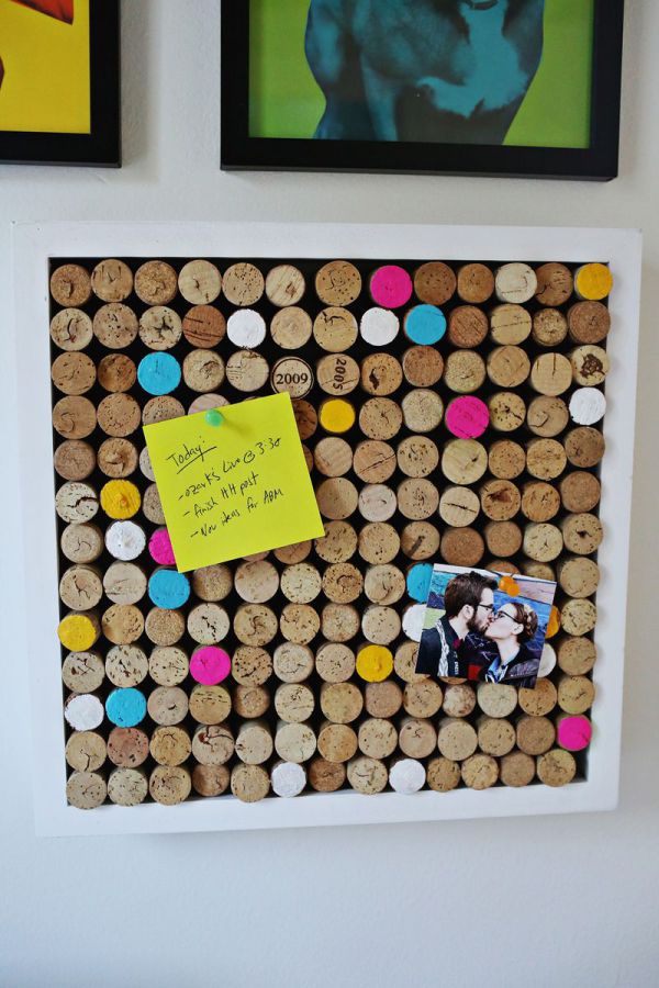 - Wine cork bulletin board: This is a practical and stylish way to display important notes and reminders. To make a wine cork bulletin board, you will need a frame, a piece of foam board, a hot glue gun, and a collection of wine corks. Simply glue the wine corks to the foam board in a desired pattern, then place the board inside the frame. Hang the bulletin board on a wall or use it as a tabletop display.