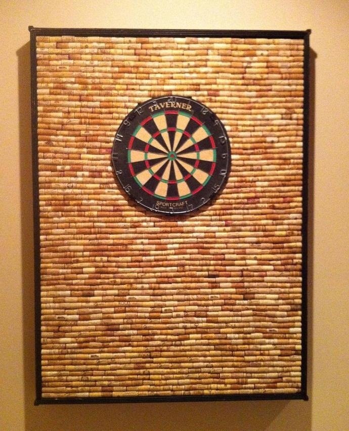 This DIY wine cork dart board cabinet is a fun and stylish way to add a personal touch to your home game room or bar. The cabinet is made from wine corks, which have been glued to a piece of plywood or other sturdy surface in a desired pattern. The wine corks create a durable and attractive surface that is easy to clean and maintain. To make this wine cork dart board cabinet, you will need a collection of wine corks, a hot glue gun, plywood or other sturdy surface, a dart board, and a clear sealant. Simply glue the wine corks to the plywood or other surface in a desired pattern using a hot glue gun. Apply a clear sealant to protect the corks from moisture, then install the dart board in the center of the cabinet using nails, screws, or adhesive. Hang the cabinet on a wall or place it on a table to add a personal touch to your home game room or bar. This wine cork dart board cabinet is a unique and eco-friendly addition to any space and is sure to impress your guests.